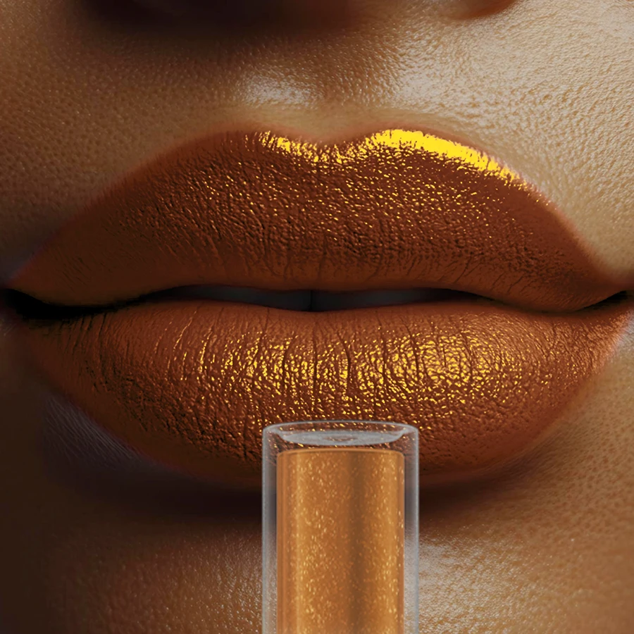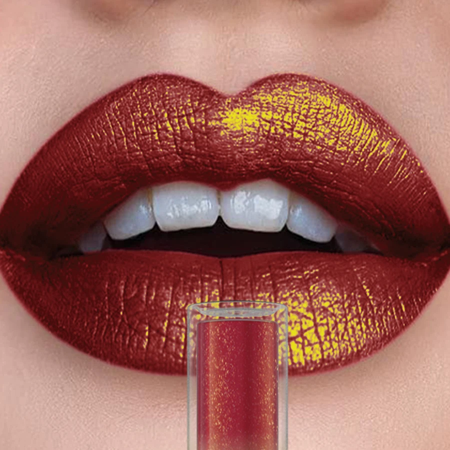 3.Pess lips together to receal glitter