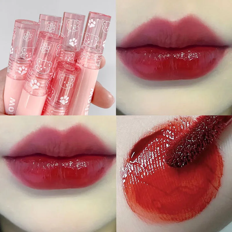 Cute Bear Velvet Lip Gloss Girl’s Matte Lip Glaze Waterproof Lasting Transparent Red-brown Lip Mud Korean Makeup Liquid Lipstick