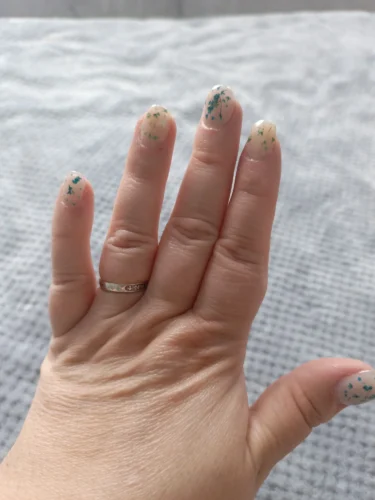I waited a month, everything dries well, but there are very few pink and yellow dried flowers, and the gel is not transparent, but slightly yellowish, but it is not very noticeable on the nails.