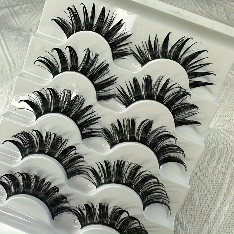 Відкрийте для себе 5 пар спайкі накладних вій з японським дизайном. Ідеально підходять для манги та косплею.